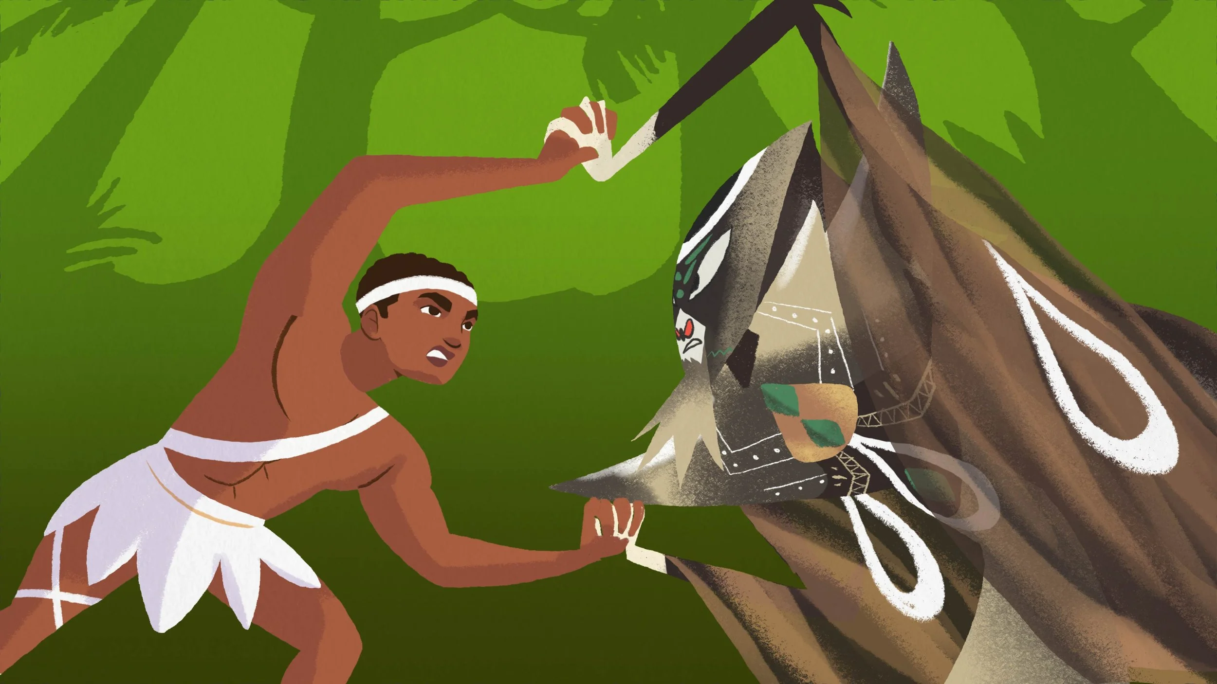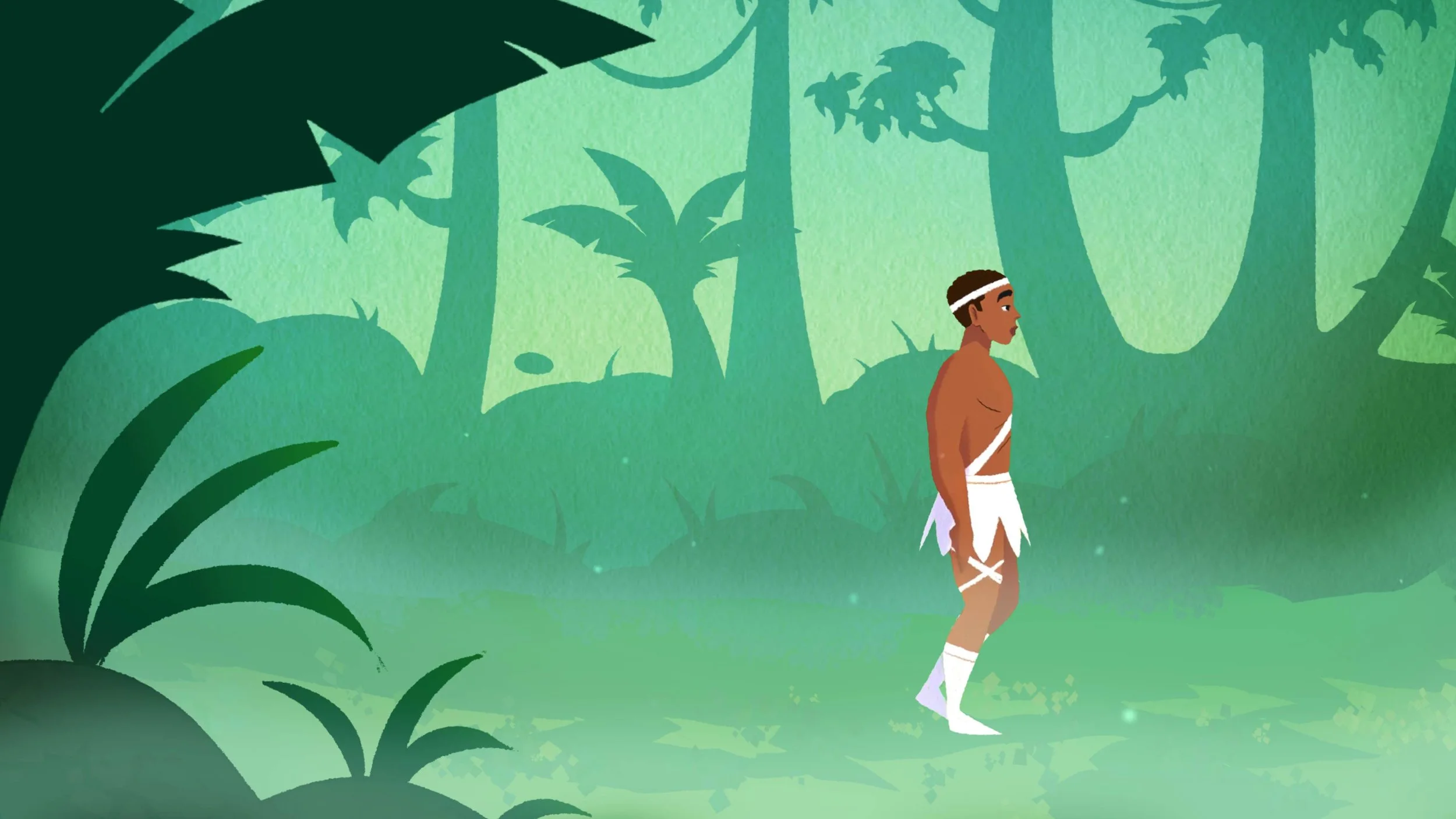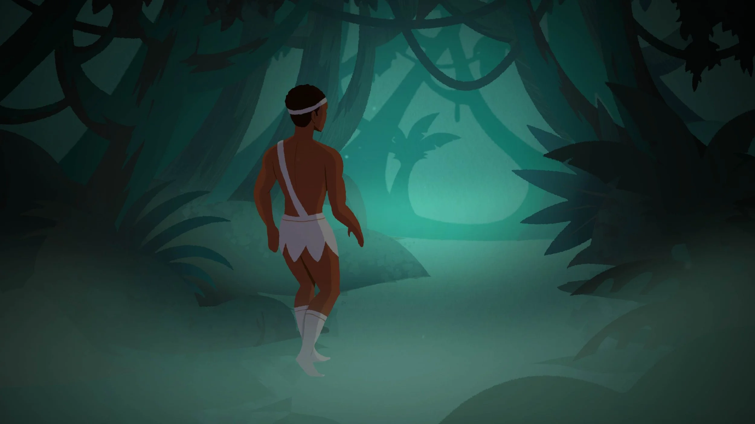 The environments were designed to situate the story within a Caribbean landscape while remaining simple enough for the characters and movement to remain the focus. Backgrounds use stylized shapes and layered color to suggest tropical foliage, mountains, and open space without overwhelming the action, allowing the characters to stand out clearly within the frame.